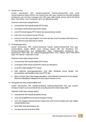 Contoh rekomendasi: BPK merekomendasikan Gubernur/Bupati/Wali Kota agar menarik