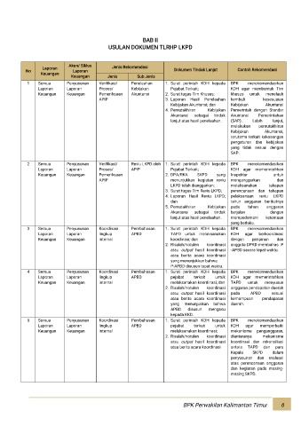 1 Semua Penyusunan Verifikasi/ Penelaahan 1. Surat perintah KDH kepada BPK merekomendasikan