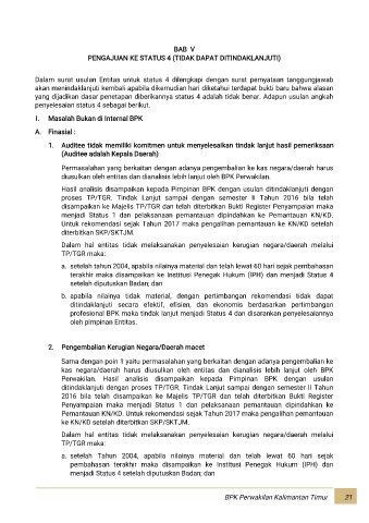 profesional BPK maka tindak lanjut menjadi Status 4 dan disarankan penyelesaiannya