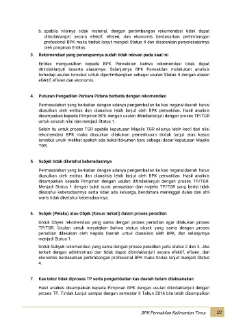 ekonomis berdasarkan pertimbangan profesional BPK maka tindak lanjut menjadi Status